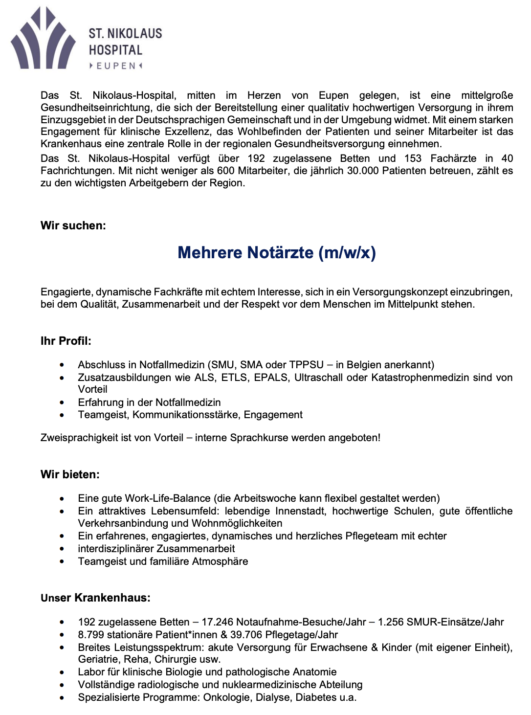 | Interesse, Teil unseres Teams zu werden? Dann senden Sie uns Ihre Bewerbung an: direktion@hospitaleupen.be |